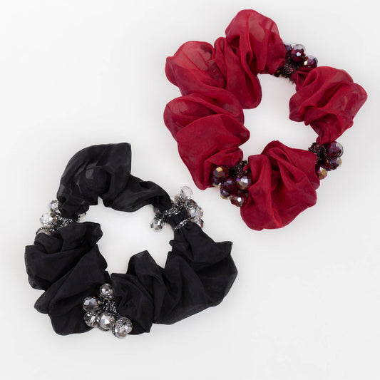 Elastice de păr tip scrunchie cu textură delicată și pietre, grosime 3 cm, set 2 buc - Crimson Mix