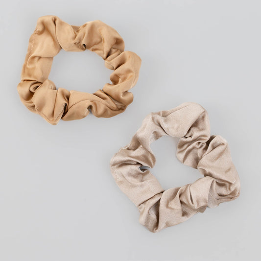 Elastice de păr tip scrunchie cu textură fină din satin, grosime 2 cm, set 2 buc - Caramel Mix