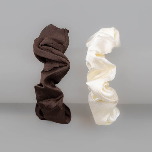 Elastice de păr tip scrunchie cu textură fină din satin, grosime 2 cm, set 2 buc - Chocolate Mix