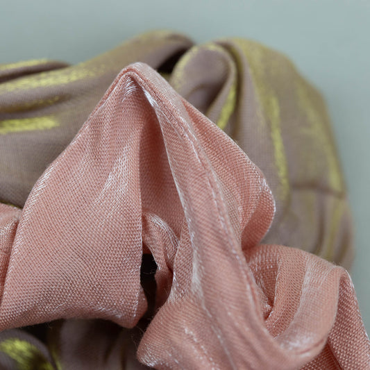 Elastice de păr tip scrunchie cu textură fină și lucioasă, grosime 3 cm, set 2 buc - Roz, Bej