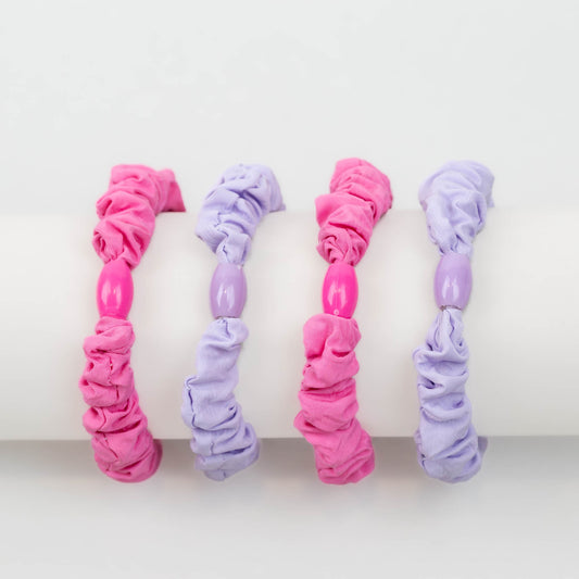 Elastice de păr tip scrunchie cu textură încrețită, grosime 1,5 cm, set 4 buc - Roz, Mov