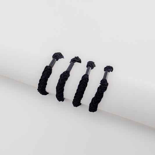 Elastice de păr cu textură împletită, grosime 1 cm, set 4 buc - Negru