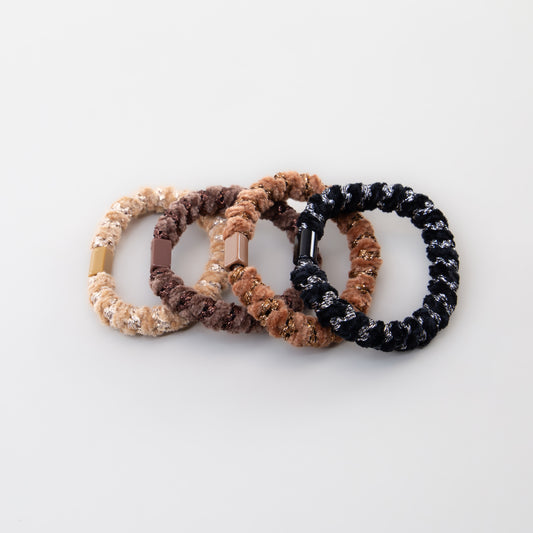 Elastice de păr cu textură răsucită, grosime 1 cm, set 4 buc - Maro, Negru