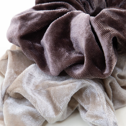 Elastice de păr tip scrunchie cu textură catifelată, grosime 5 cm, set 2 buc - Maro, Bej