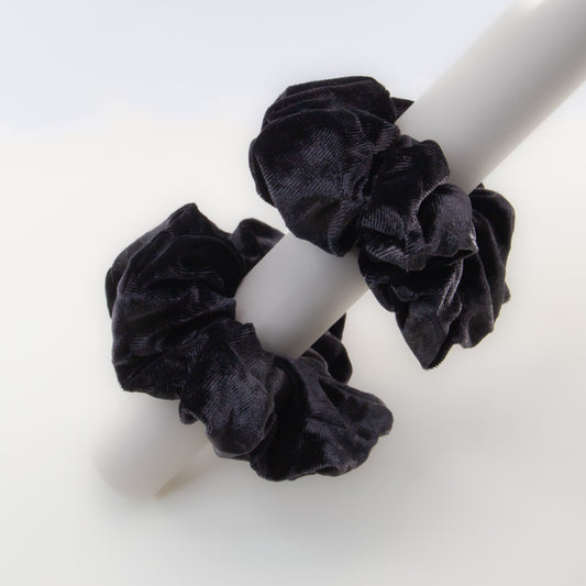 Elastice de păr tip scrunchie cu textură catifelată, grosime 5 cm, set 2 buc - Negru