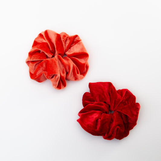 Elastice de păr tip scrunchie cu textură catifelată, grosime 5 cm, set 2 buc - Roșu, Portocaliu