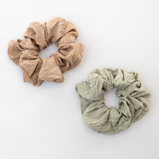 Elastice de păr tip scrunchie Earth Tones, grosime 5 cm, set 2 buc - Maro, Verde