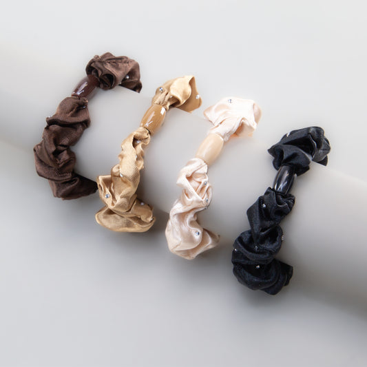 Elastice de păr tip scrunchie cu textură fină din satin, grosime 4 cm, set 3 buc - Negru, Bej, Maro