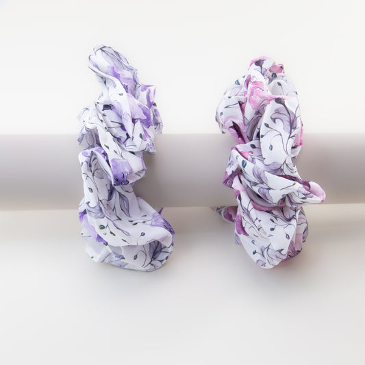Elastice de păr tip scrunchie Flora, grosime 5 cm, set 2 buc - Roz, Mov