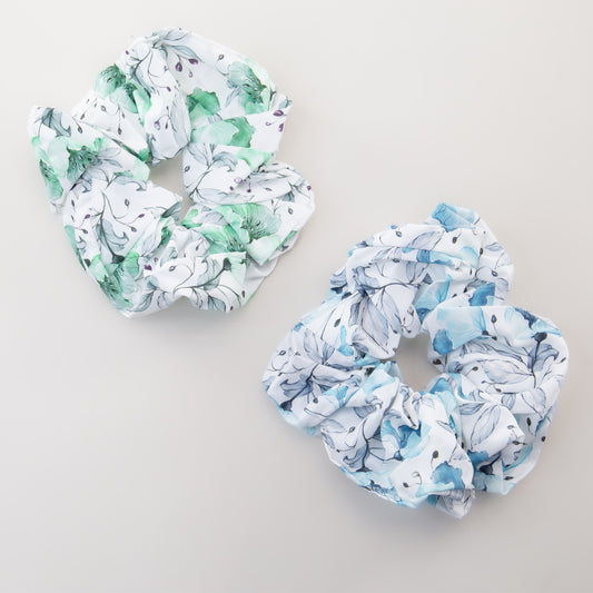 Elastice de păr tip scrunchie Flora, grosime 5 cm, set 2 buc - Verde, Albastru