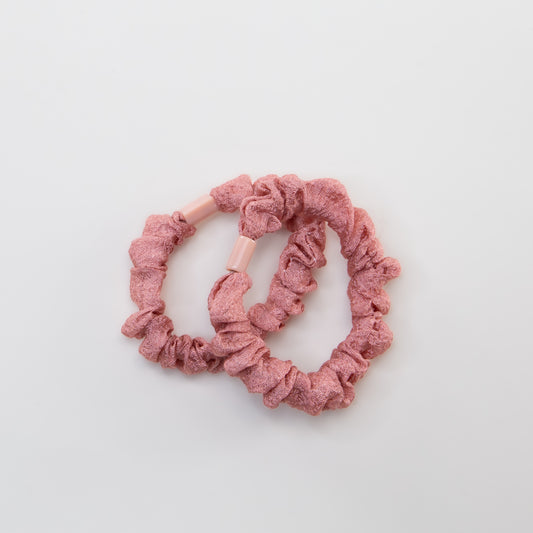 Elastice de păr tip scrunchie cu textură încrețită, grosime 1,5 cm, set 4 buc - Roz Pudrat