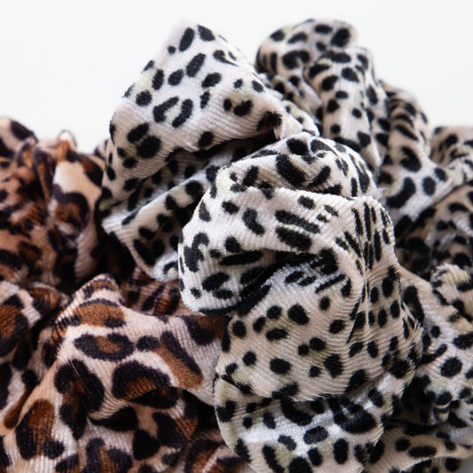 Elastice de păr tip scrunchie Jungle Chic cu textură catifelată, grosime 5 cm, set 2 buc - Maro & Negru