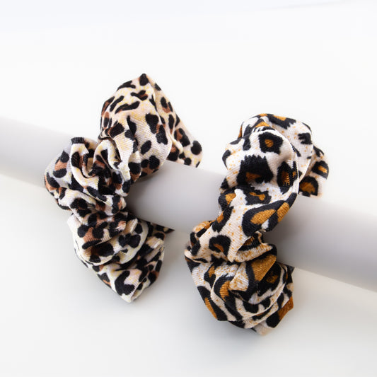Elastice de păr tip scrunchie Jungle Chic cu textură catifelată, grosime 5 cm, set 2 buc - Maro