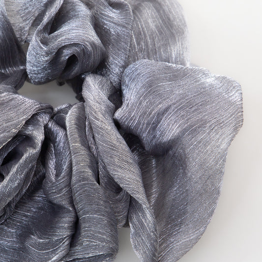 Elastice de păr tip scrunchie Lunaria cu aspect de organza, grosime 5 cm - Gri