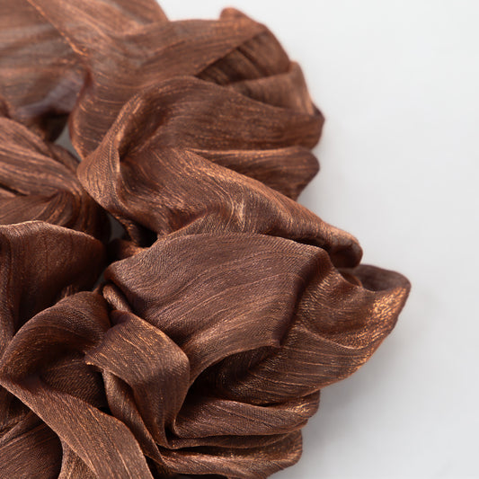 Elastice de păr tip scrunchie Lunaria cu aspect de organza, grosime 5 cm - Maro