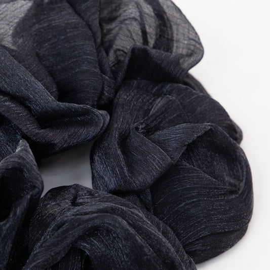 Elastice de păr tip scrunchie Lunaria cu aspect de organza, grosime 5 cm - Negru