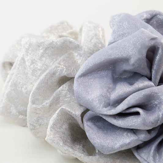 Elastice de păr tip scrunchie Shiny Mood cu efect lucios, grosime 5 cm, set 2 buc - Alb, Albastru