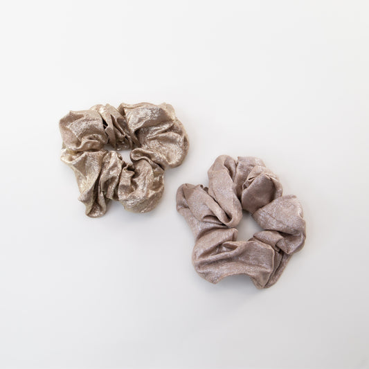 Elastice de păr tip scrunchie Shiny Mood cu efect lucios, grosime 5 cm, set 2 buc - Maro