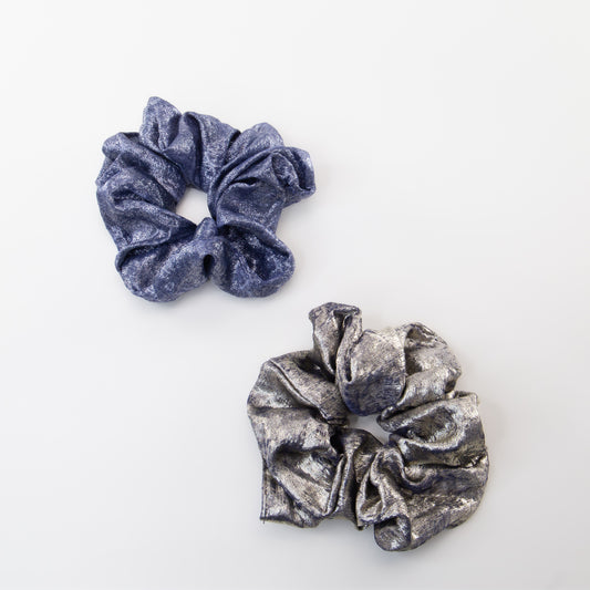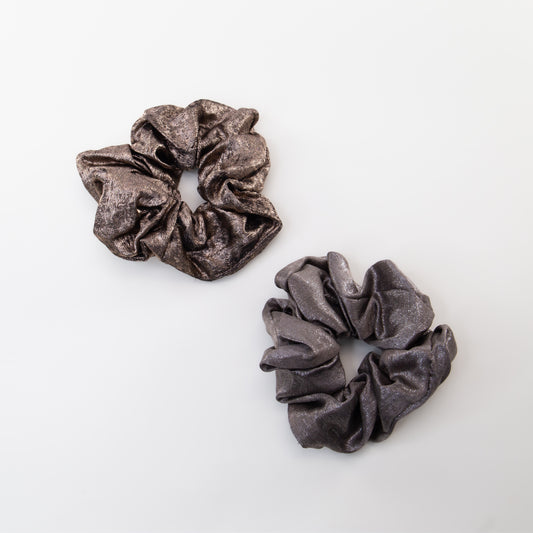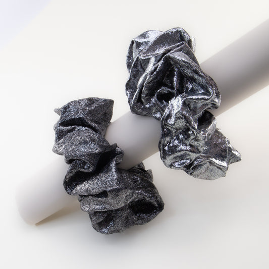 Elastice de păr tip scrunchie Shiny Mood cu efect lucios, grosime 5 cm, set 2 buc - Gri