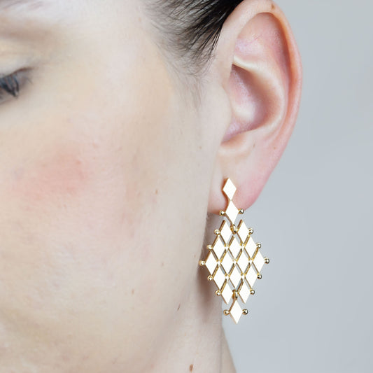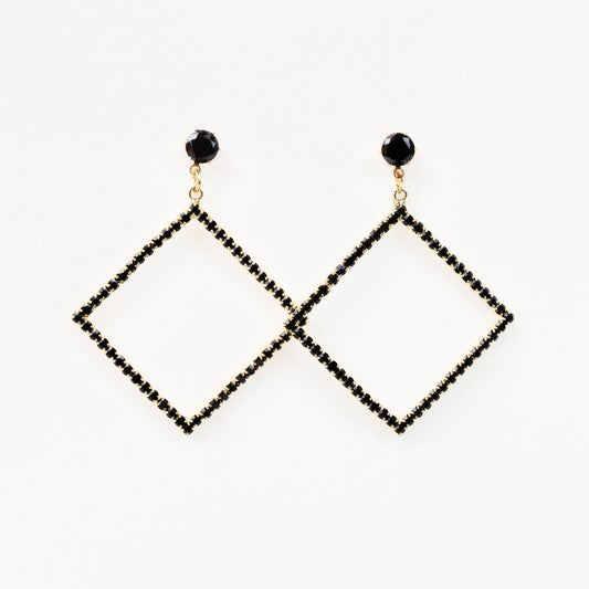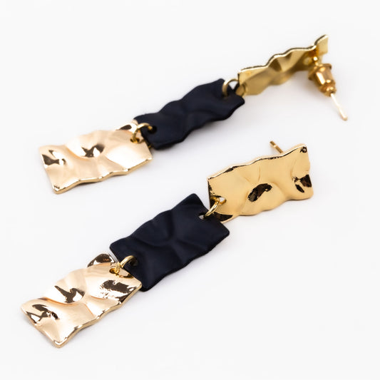 Cercei lungi cu forme dreptunghiulare în relief - Auriu, Negru