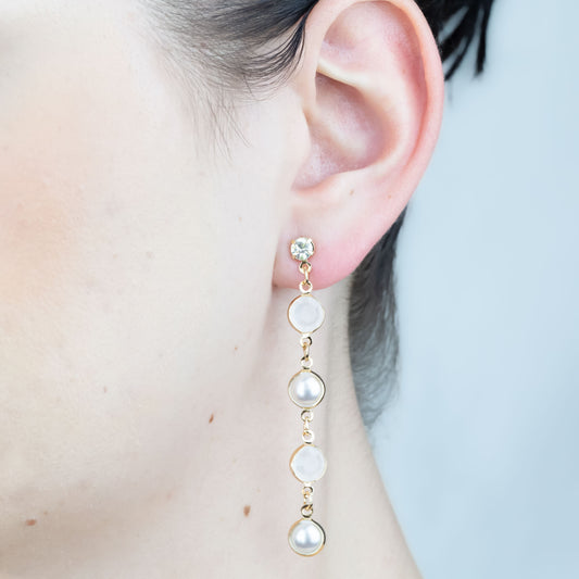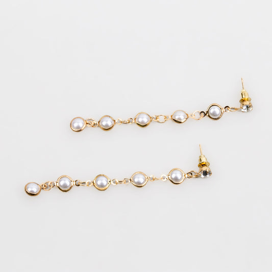 Cercei lungi cu perle, lănțișor și piatră - Auriu