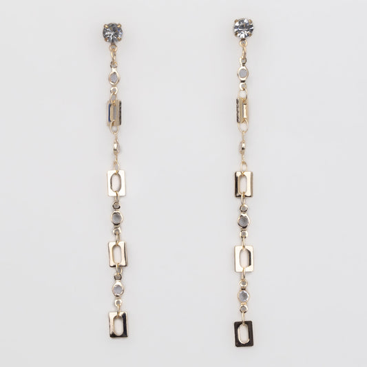 Cercei lungi cu lănțișor, ștrasuri și zale pătrate - Auriu