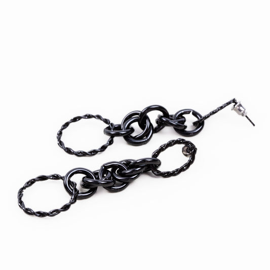Cercei lungi în formă de lanț cu zale spiralate - Negru