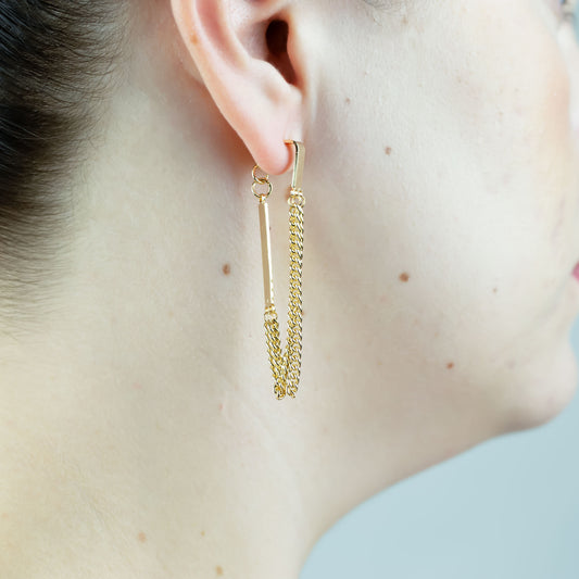 Cercei lungi în stil minimal cu lanț dublu - Auriu