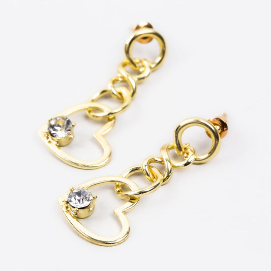 Cercei în formă de lanț cu inimă si piatră strălucitoare - Auriu