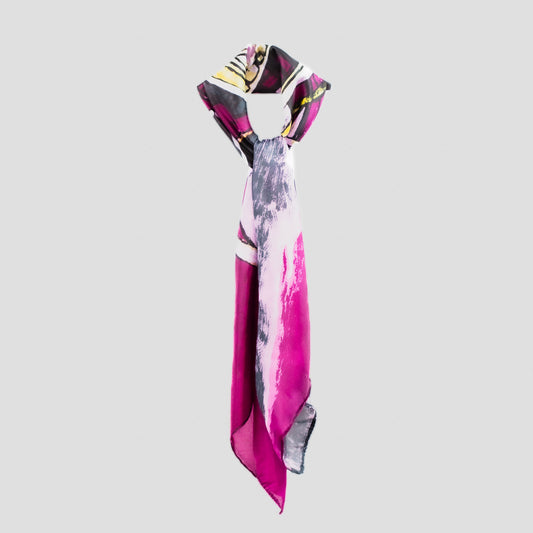 Eșarfă fină cu efect de mătase, imprimeu floral, aspect pictat, 65 x 65 cm - Roz, Mov