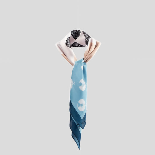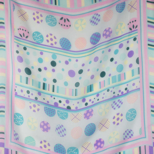 Eșarfă fină cu efect de mătase, imprimeu cu buline abstracte și dungi, 65 x 65 cm - Fresh Vibes