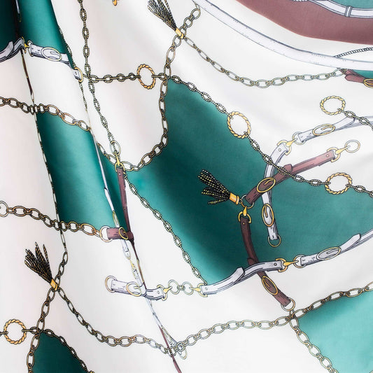 Eșarfă damă din satin cu imprimeu deluxe, 70 x 70 cm - Verde, Maro, Alb