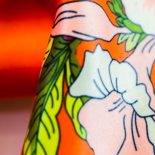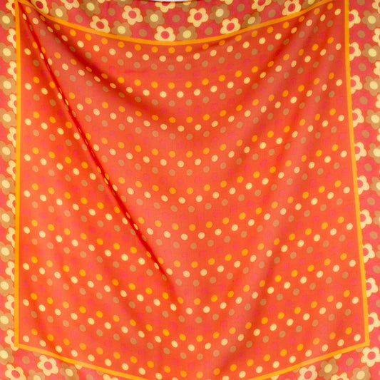 Eșarfă fină cu efect de mătase, imprimeu cu flori și buline, 65 x 65 cm - Portocaliu