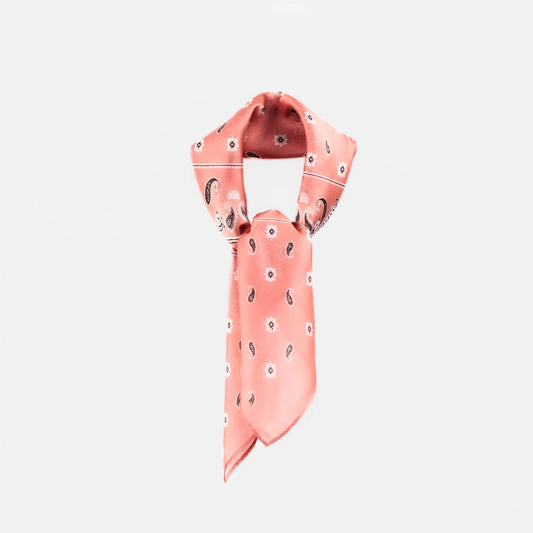 Eșarfă damă din satin cu imprimeu paisley, 60 x 60 cm - Roz Prăfuit, Alb