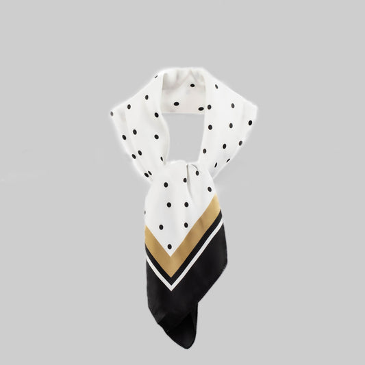 Eșarfă damă din satin, imprimeu cu buline mici și secțiuni geometrice, 70 x 70 cm - Alb, Negru