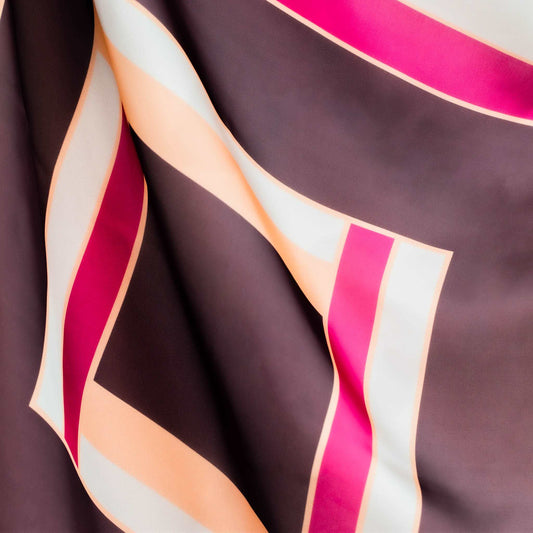 Eșarfă damă din satin, imprimeu cu secțiuni geometrice, 70 x 70 cm - Maro, Bej, Roz