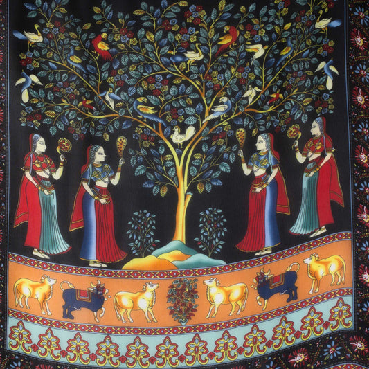 Eșarfă fină cu efect de mătase, imprimeu organic ritual, 65 x 65 cm - Night Vibes