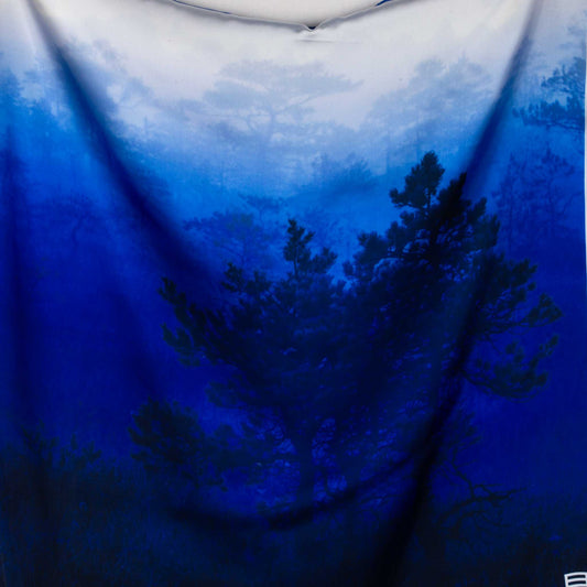 Eșarfă fină cu efect de mătase, imprimeu pădurea dimineții, 65 x 65 cm - Albastru