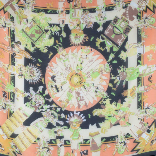 Eșarfă fină cu efect de mătase, imprimeu tribal, 65 x 65 cm - Peach, Negru, Verde