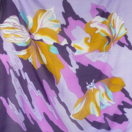 Eșarfă fină cu efect de mătase, imprimeu abstract cu flori mari, 65 x 65 cm - Mov, Galben
