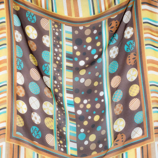 Eșarfă fină cu efect de mătase, imprimeu cu buline abstracte și dungi, 65 x 65 cm - Earth Vibes