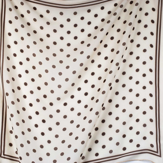 Eșarfă fină cu efect de mătase, imprimeu cu buline și dungi, 65 x 65 cm - Crem