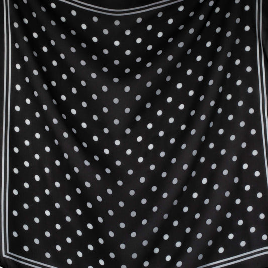 Eșarfă damă din satin, imprimeu cu buline mari, 70 x 70 cm - Negru, Alb