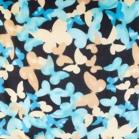 Eșarfă fină cu efect de mătase, imprimeu cu fluturi, 65 x 65 cm - Negru, Bej, Albastru