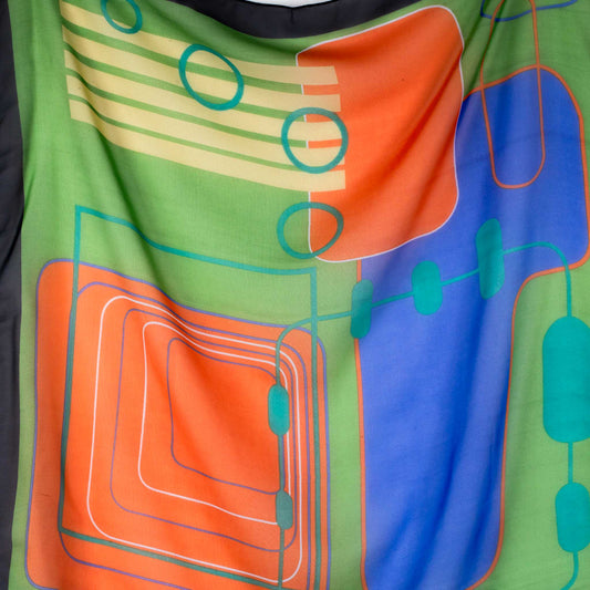 Eșarfă fină cu efect de mătase, imprimeu cu forme geometrice, 65 x 65 cm - Verde, Portocaliu, Albastru