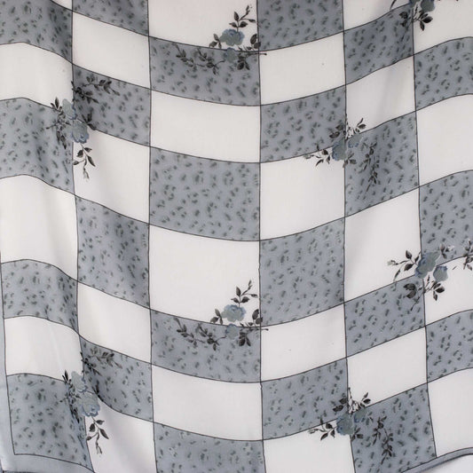 Eșarfă fină cu efect de mătase, imprimeu în carouri cu flori, 65 x 65 cm - Gri