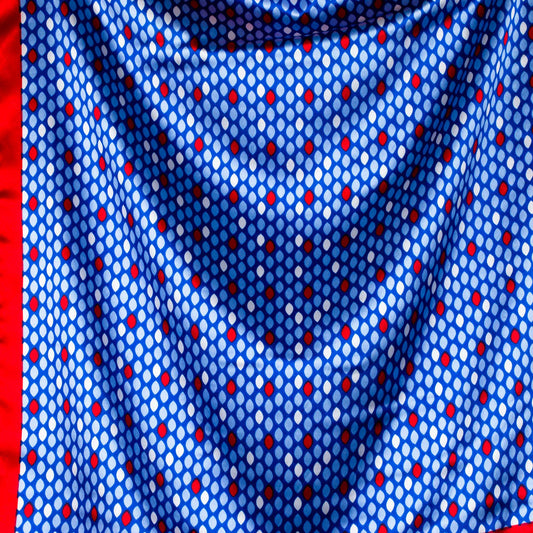 Eșarfă damă din satin imprimeu cu solzi abstracți, 60 x 60 cm - Albastru, Roșu
