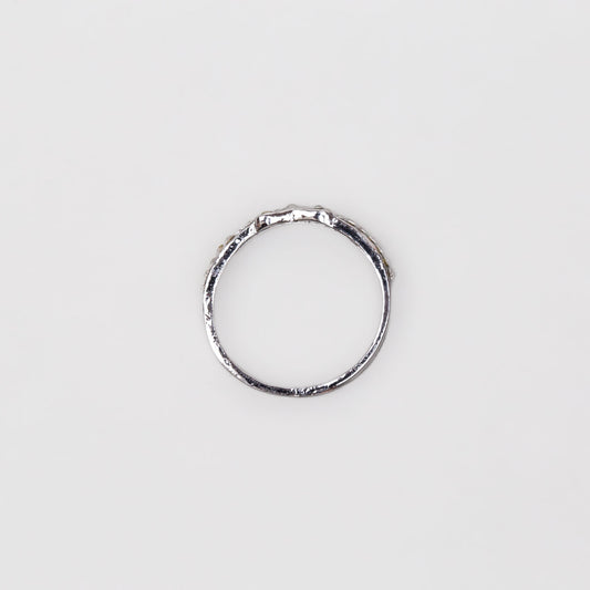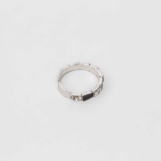 Inel argintiu cu forme de zig-zag și ștrasuri negre