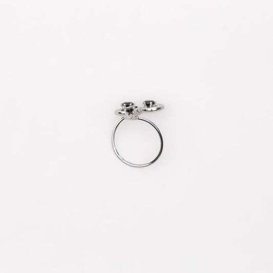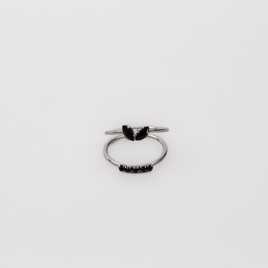 Inel argintiu dublu cu pietre și ștrasuri negre