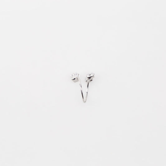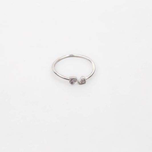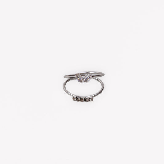 Inel dublu cu formă de inimă și ștrasuri mici - Argintiu